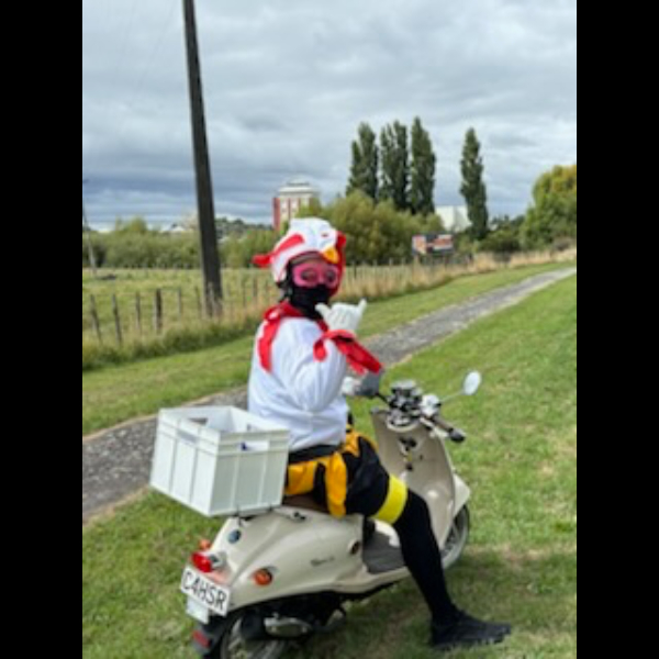 The Grand Annual Jolly Good Chaps Napier to Wellington 50cc Scooter Charity Challenge is a somewhat torturous charity event where participants ride a 50cc scooter from Mitre 10 Mega Napier carpark in Napier to the Wellington CBD.