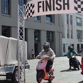 The Grand Annual Jolly Good Chaps Napier to Wellington 50cc Scooter Charity Challenge is a somewhat torturous charity event where participants ride a 50cc scooter from Mitre 10 Mega Napier carpark in Napier to the Wellington CBD.
