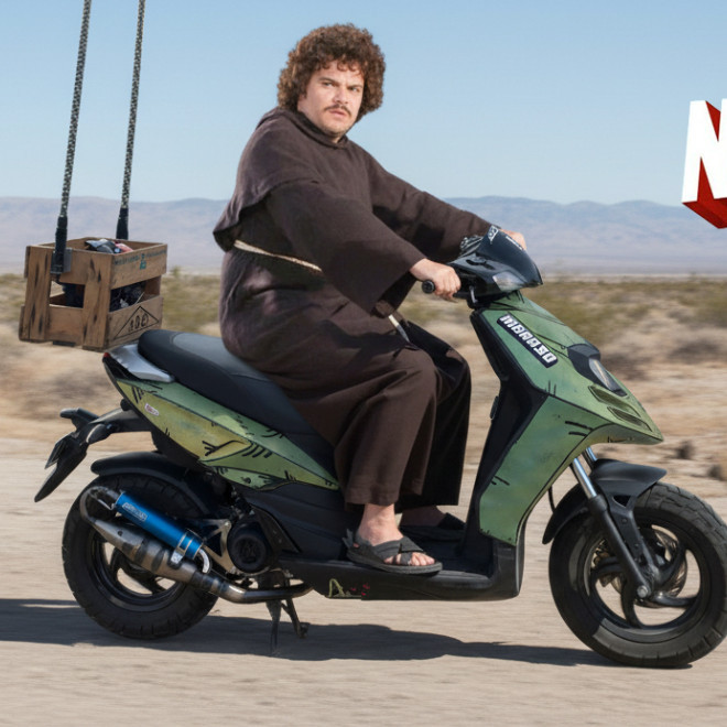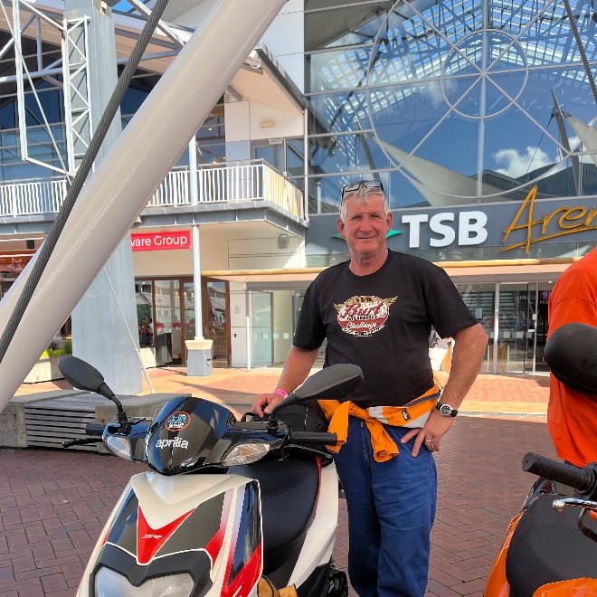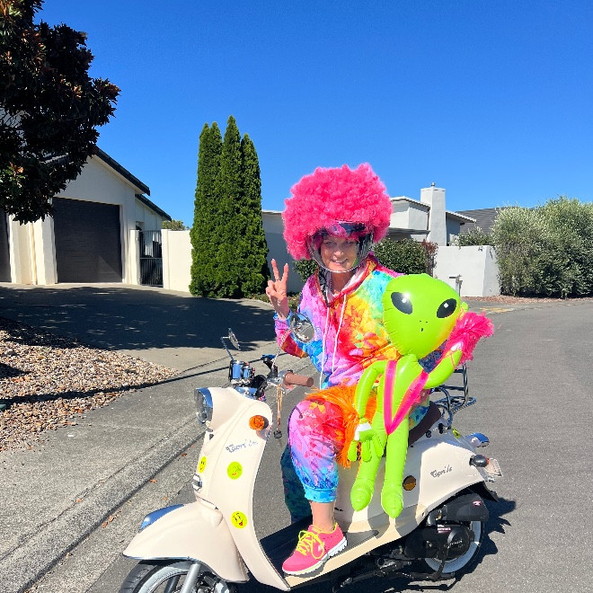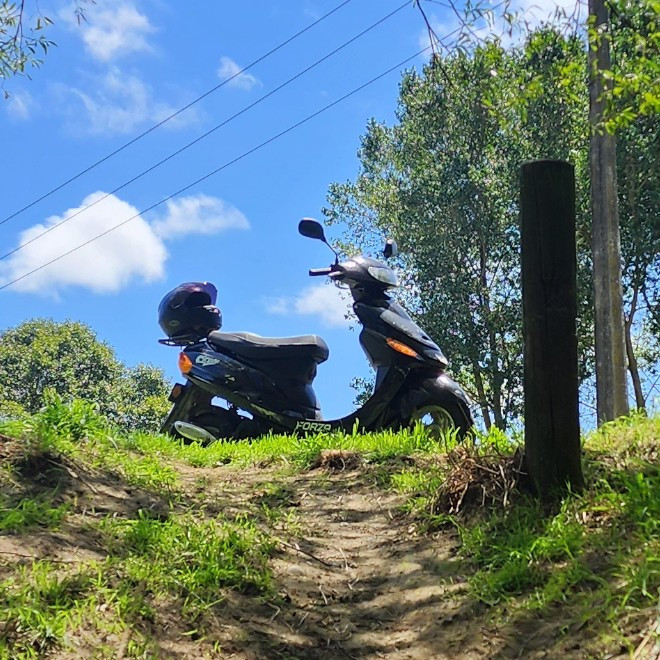 Zak rides a moped